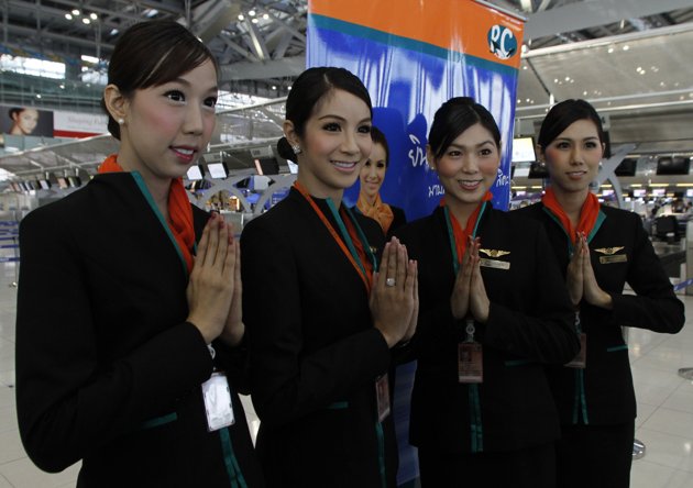 Sebuah Maskapai Penerbangan Thailand, PC Air, telah mengklaim sebagai maskapai pertama di dunia yang merekrut dan mempekerjakan pramugari-pramugari transseksual awal tahun ini. (Reuters / Chaiwat Subprasom)